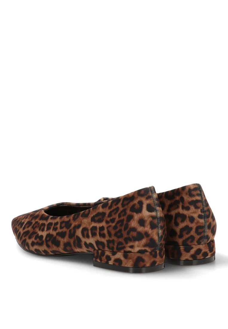 Esta bailarina, con su distintivo y llamativo estampado leopardo, es una apuesta segura para crear looks con personalidad y un aire fashion. Su diseño diario se caracteriza por una silueta pulcra y un corte abierto que favorece el pie, perfecto para los días en que buscas un toque de atrevimiento.