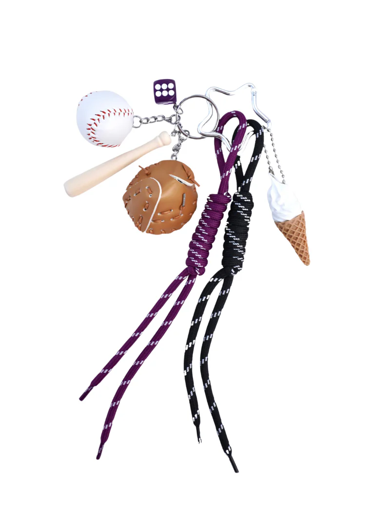 Añade un toque deportivo y vibrante a tu estilo con el charm Baseball Star Purple. Inspirado en el mundo del béisbol, este accesorio incluye una mini pelota, un guante de béisbol, un bate de madera en miniatura y un cono de helado que aporta un toque divertido y fresco. El charm también cuenta con cordones decorativos en tonos lila y negro, perfecto para personalizar tus bolsos favoritos.
