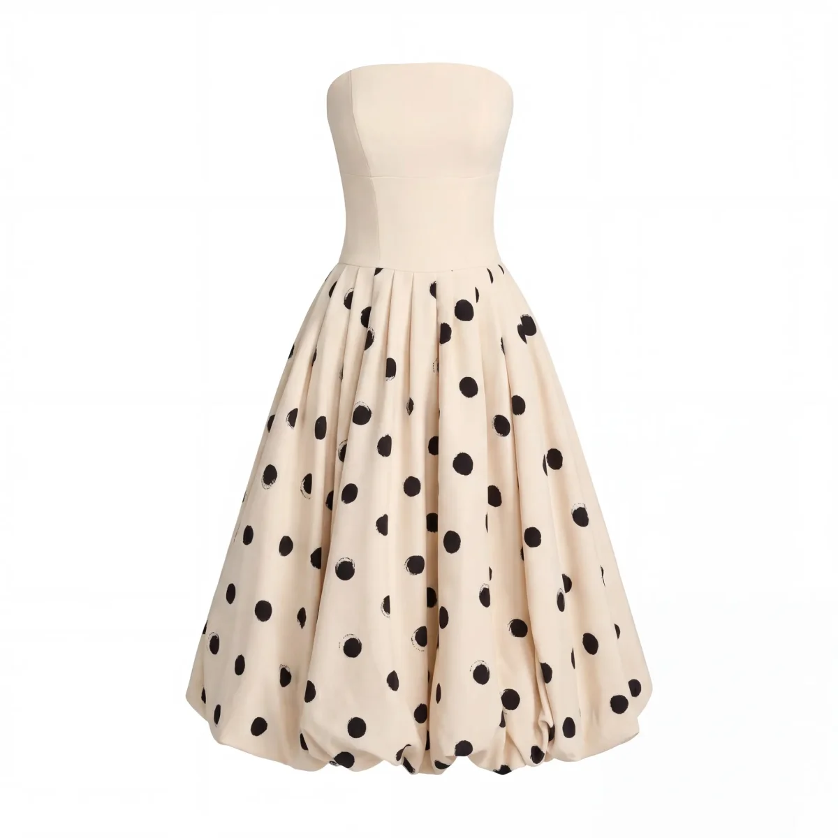 - A-line silhouette with bubble hem