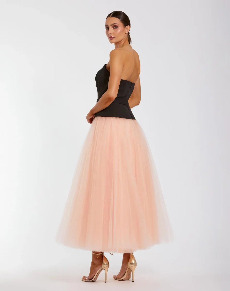 - Crepe bodice; Tulle skirt (100% polyester)