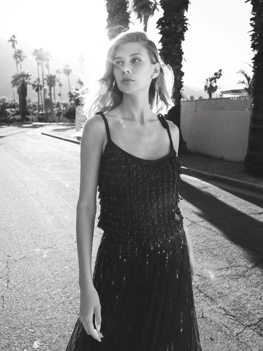 Discover the epitome of glamour with our Long Sequin Embellished Chiffon Evening Skirt. Crafted from luxurious chiffon fabric and adorned with intricate sequin detailing, this ankle-length masterpiece promises to make you the center of attention at formal events, galas, and special occasions. Choose a sequined or metallic bodysuit as your top and finish the look with high heels and a clutch.