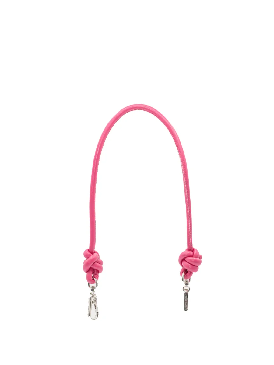 Cadena de piel vegana de 55 cm de longitud en color fucsia decorada con dos nudos.