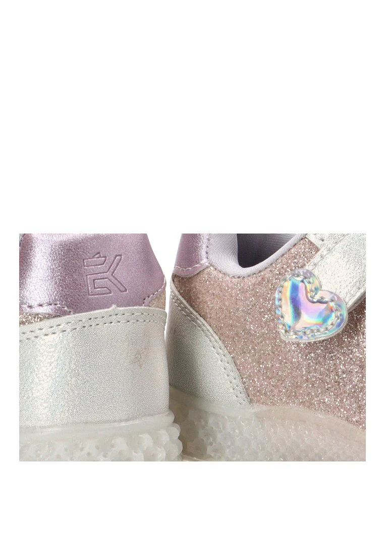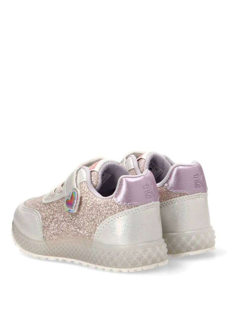 Fabricadas con un material exterior sintético de alta calidad, estas deportivas destacan por su acabado brillante y su diseño único con forma de corazón en purpurina rosa. Son ideales para resistir el ritmo de juego y exploración de las más pequeñas, aportando un aire fresco y lleno de personalidad a sus looks diarios.