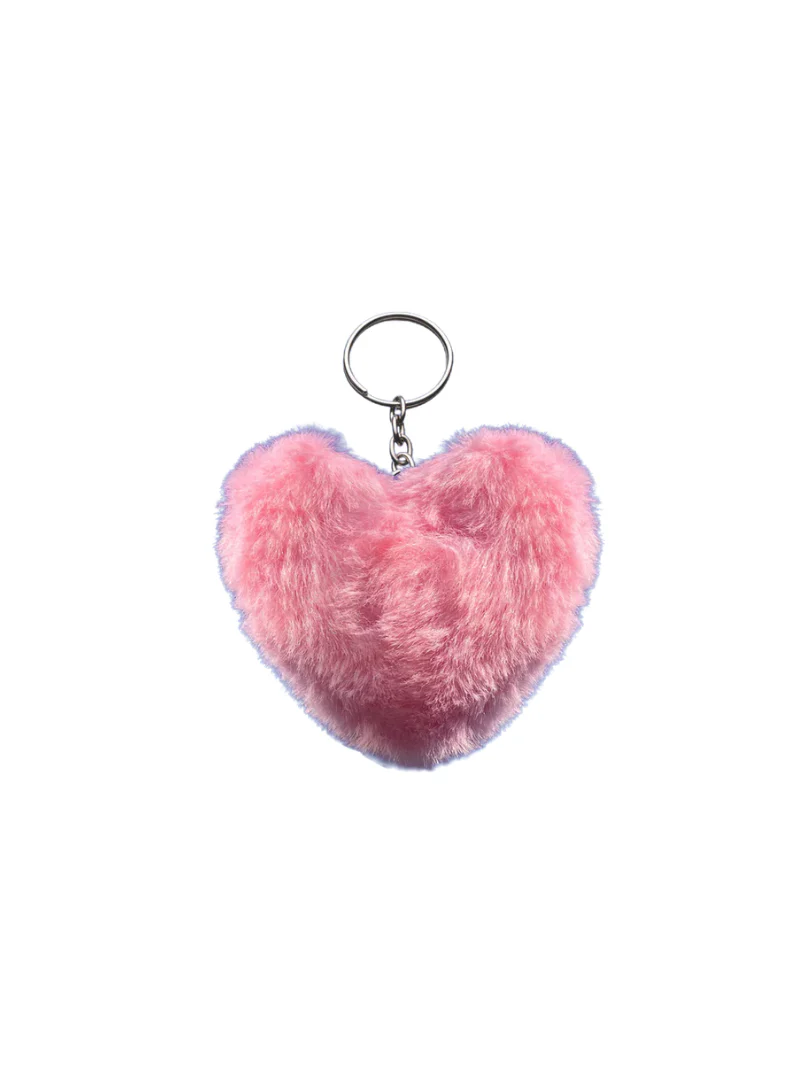 Llavero de piel sintética en forma de corazón de color rosa claro. Muy suave e ideal para complementar tus bolsos.
