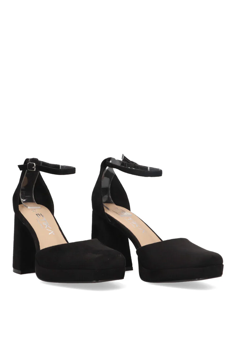 El diseño exterior en antelina le confiere una textura suave y un acabado premium que contrasta con la intensidad del negro. El cierre de hebilla en el tobillo no solo es un detalle clásico de diseño, sino que también garantiza un ajuste perfecto y seguro al pie. ETIKA ha logrado un equilibrio perfecto entre la audacia de un tacón alto y la sofisticación de sus materiales.